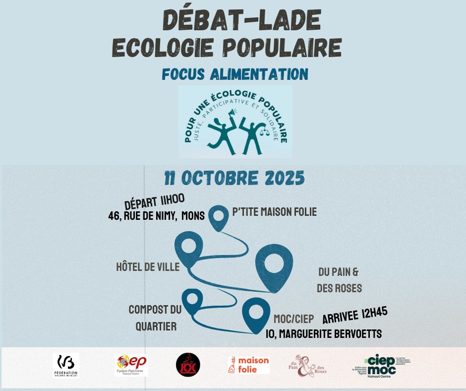 Une balade au cœur de la ville de Mons avec des arrêts symboliques pour savoir plus sur l’écologie populaire ainsi que sur les alternatives locales autour de l’alimentation