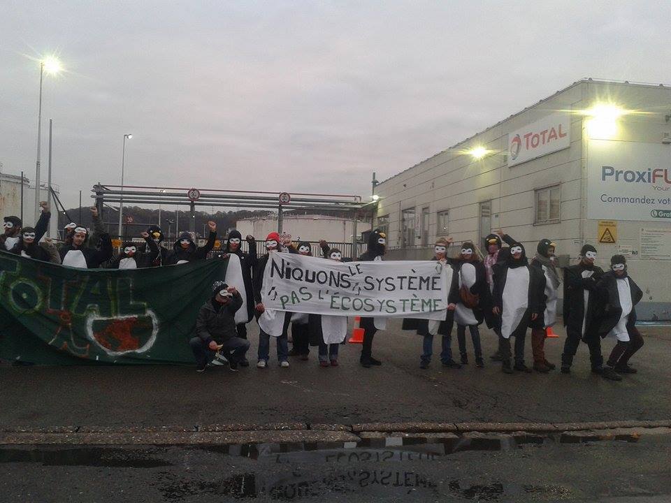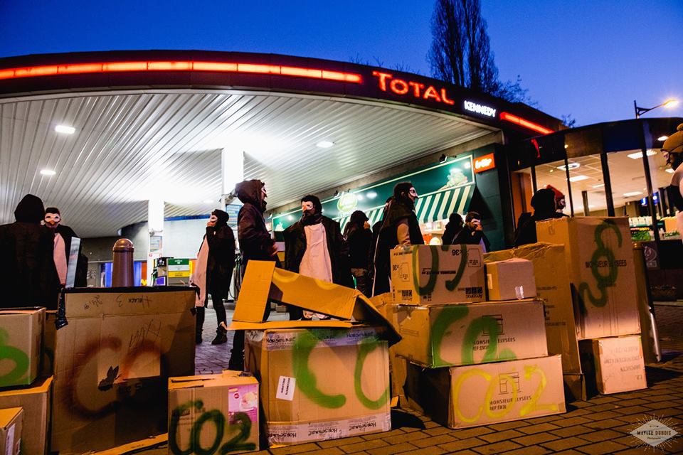 Les activistes du collectif «Total-y-Terre» ont bloqué le mercredi 2 décembre l’accès au dépôt pétrolier de Total au Port Autonome de Liège.